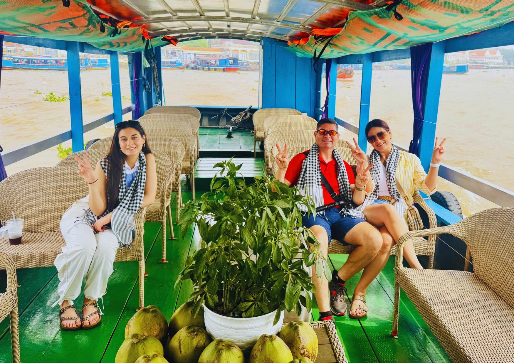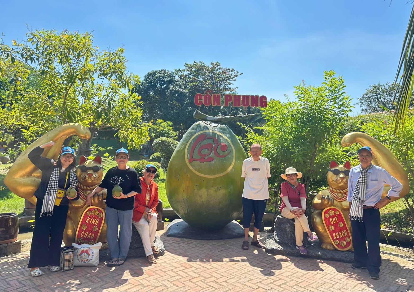 Morning: Reach the port to take a leisurely cruise on the Tien River to see 4 islets which are represented as four mythical creatures in Southeast Asia: Dragon, Kirin, Tortoise, and Phoenix, for our main activities: